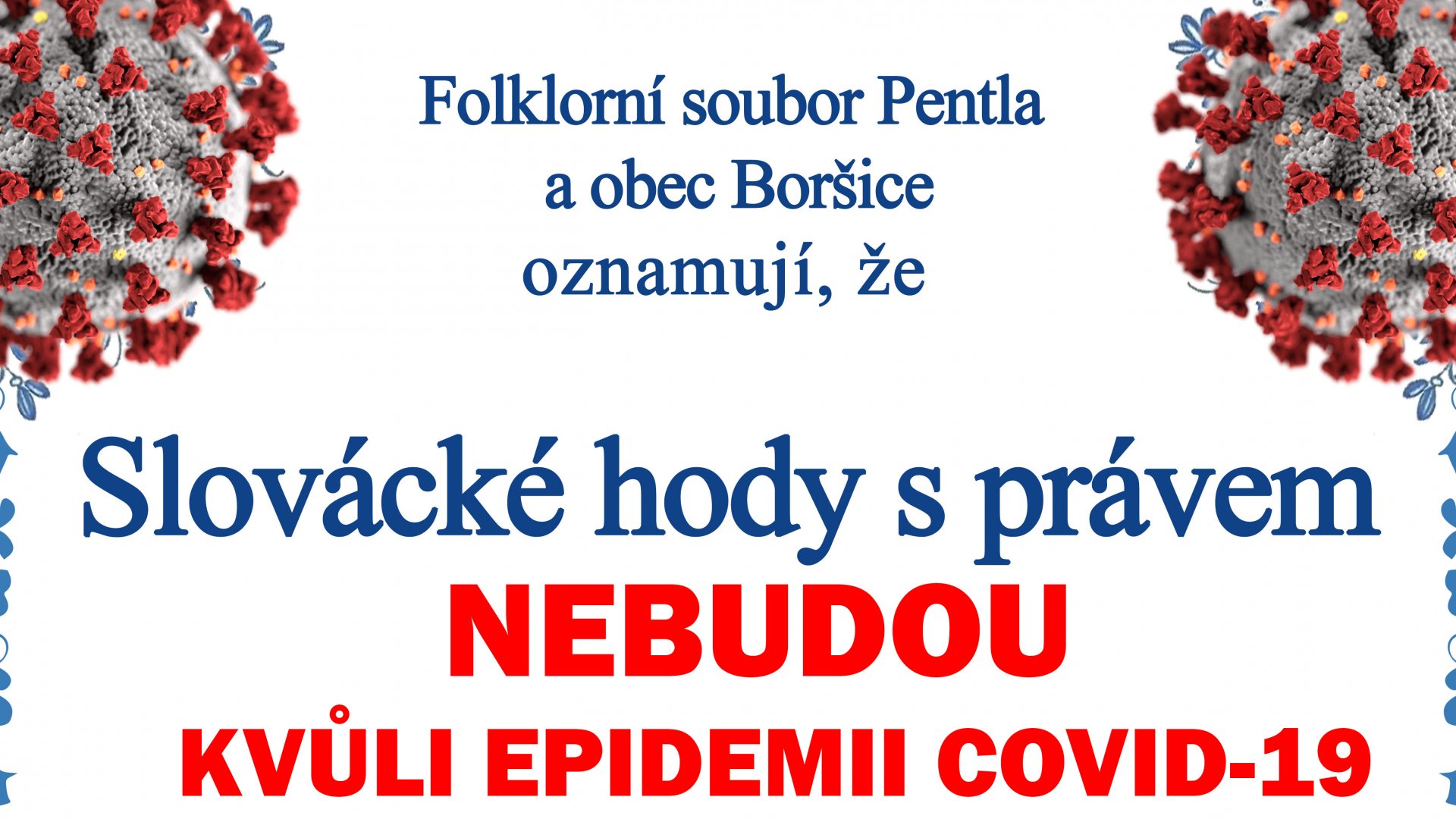 05.10.2020 Hody v Boršicích nebudou Je nám to velmi líto, ale letos se hody v Boršicích neuskuteční. Je to z důvodu opatření proti šíření nemoci COVID-19. Galerie